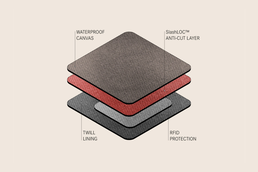 Our heavy-weight canvas, made from 100% nylon, features high abrasion resistance for exceptional durability. Backed with a waterproof inner coating and finished with a water-repellent surface, it offers superior protection against rough use and moisture. Strategically positioned in high-friction areas, it ensures enhanced durability